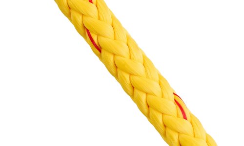 Ισχυρό σχοινί 24-κλώνων τύπου «πλεκτό (braided)» με αφρώδη πυρήνα και εξωτερική κίτρινη επένδυση, σχεδιασμένο για χρήση σε αγκυροβολία ή πρόσδεση σκαφών.