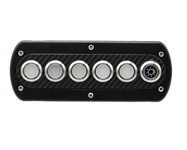 Κατασκευασμένος με ανθεκτική πρόσοψη ανθρακί ή carbon, διαθέτει έξι φωτιζόμενους διακόπτες για έλεγχο ηλεκτρικών κυκλωμάτων όπως φώτα, αντλίες ή βοηθητικά συστήματα. Η στεγανή σχεδίαση με δακτυλίους O-ring προστατεύει από υγρασία, ενώ η οριζόντια ή κάθετη τοποθέτηση διευκολύνει την ενσωμάτωση σε οποιοδήποτε ταμπλό σκάφους.