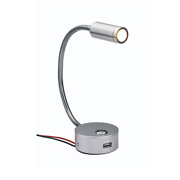Πλαφονιέρα LED 12V από αλουμίνιο με εύκαμπτο βραχίονα και ενσωματωμένη θύρα USB.