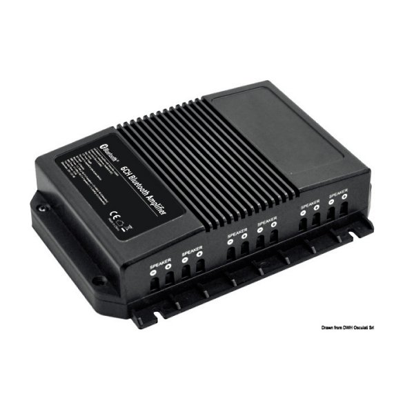 Πολυκάναλος ενισχυτής ήχου Bluetooth για εγκατάσταση σε σκάφος, με τροφοδοσία 12 V DC και επιλογή ισχύος 6×30 W ή 8×30 W.