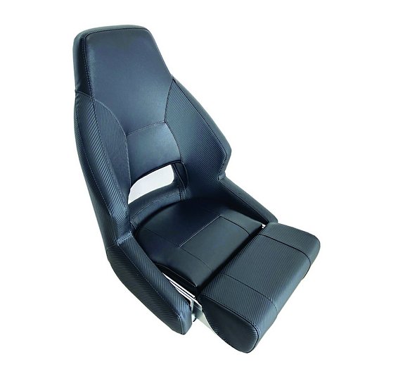 Εργονομικό κάθισμα σκαφών Osculati με flip-up RM52 σε σκούρο μπλε χρώμα, με ενισχυμένη επένδυση για άνετη πολύωρη χρήση και δυνατότητα ανύψωσης του εμπρόσθιου τμήματος για οδήγηση σε ημιόρθια θέση.