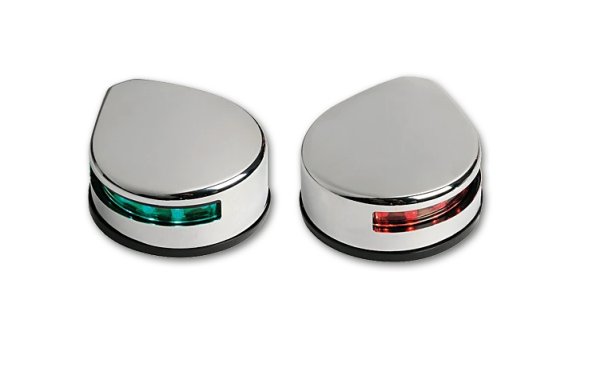 Ζεύγος επικαθήμενων πλαϊνών φανών ναυσιπλοΐας με LED φωτισμό και σώμα από ανοξείδωτο ατσάλι. Περιλαμβάνει κόκκινο φανό για αριστερά και πράσινο για δεξιά, κατάλληλους για σκάφη έως 12 μέτρα.