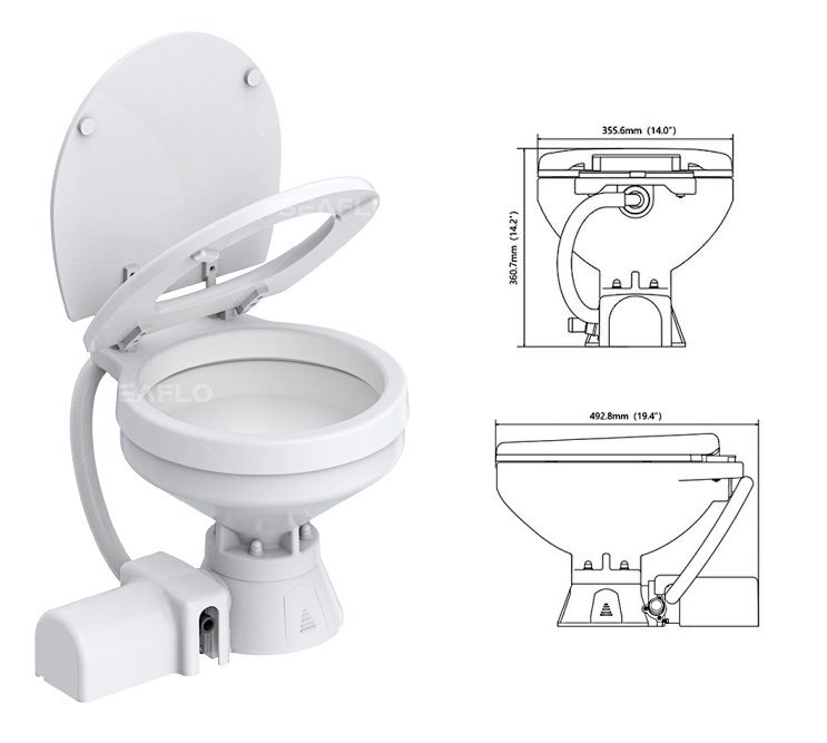 Ηλεκτρική τουαλέτα σκαφών μεγάλου μεγέθους της SEAFLO, διαθέσιμη σε 12V και 24V.
