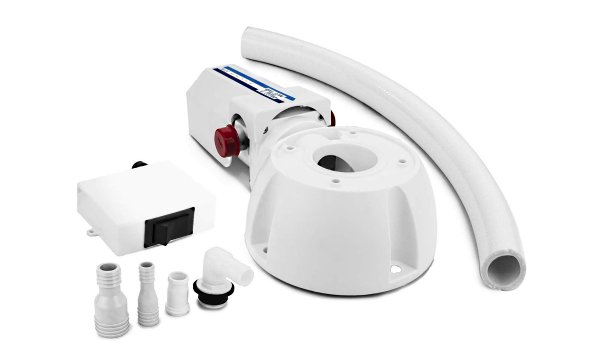 Περιλαμβάνει ηλεκτροκίνητη βάση με αντλία/θρυμματιστή, καλωδίωση και διακόπτη χειρισμού, μαζί με σωλήνα και συνδετικά εξαρτήματα για προσαρμογή στα περισσότερα μπολ τουαλέτας σκαφών. Η μονάδα προσφέρει ομαλή άντληση και απομάκρυνση λυμάτων με χαμηλό θόρυβο.
