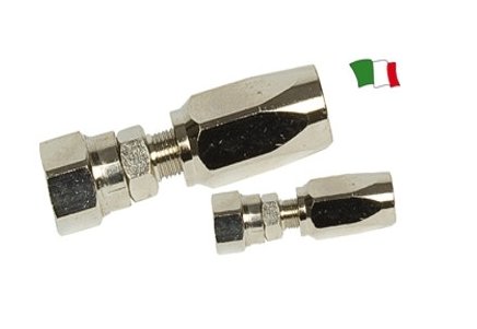 Πρόκειται για μεταλλικά ρακόρ υψηλής αντοχής, κατάλληλα για χρήση με σωλήνες υδραυλικού τιμονιού, εξασφαλίζοντας στεγανή σύνδεση μεταξύ αντλίας, κυλίνδρου και υπόλοιπου κυκλώματος. Η επιφανειακή επεξεργασία τύπου χρωμίου/επιχρωμίωσης προσφέρει πρόσθετη προστασία από διάβρωση στο θαλάσσιο περιβάλλον.