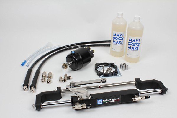Το κιτ προσφέρει ομαλή και ακριβή αίσθηση στο τιμόνι και παραδίδεται έτοιμο για εγκατάσταση: αντλία τιμονιού (helm) GMO-MRA, κύλινδρος MC150BR, σετ brass fittings (GTN7x10916 & AC10/T916), δύο σωλήνες SAE100 R7 ¼″ μήκους 2×6 m με πρεσσαρισμένα ρακόρ στη μία άκρη, υδραυλικό λάδι 2 L και κιτ πλήρωσης.