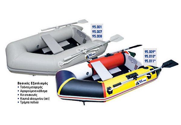 Σειρά φουσκωτών σκαφών με πιχάκια για γρήγορο στήσιμο και εύκολη μεταφορά. Διατίθεται σε Γκρι (4 μεγέθη) και σε Χρωματιστό (3 μεγέθη) όπως στην εικόνα.