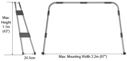 - Μέγιστο ύψος: 1,1 m – Μέγιστο πλάτος βάσης: 2,2 m