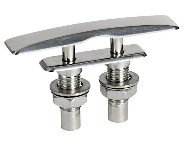 Κοτσανέλο INOX χαμηλού προφίλ (flat cleat) για σταθερή πρόσδεση στο κατάστρωμα. Διατίθεται σε μήκη 160 mm και 240 mm.