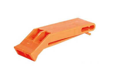Σφυρίχτρα σήμανσης τύπου pealess σε πορτοκαλί χρώμα για τοποθέτηση σε σωσίβια ή ρουχισμό ασφαλείας.