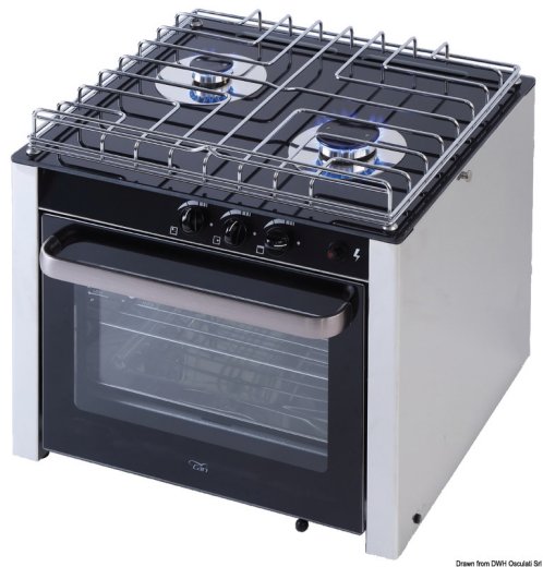 Συμπαγής κουζίνα αερίου για σκάφη με 2 εστίες και φούρνο 30 λίτρων, στις ίδιες διαστάσεις με το μοντέλο 3 εστιών. Κατασκευή INOX για αντοχή στο θαλάσσιο περιβάλλον, Piezo ανάφλεξη και θερμοζεύγη ασφαλείας σε κάθε καυστήρα. Διαθέτει gimbal leveling με κλείδωμα για σταθερότητα εν πλω και αποσπώμενη σχάρα για εύκολο καθάρισμα. Ιδανική λύση για LPG εγκαταστάσεις σε ιστιοπλοϊκά, μηχανοκίνητα και RV. Πιστοποίηση CE.