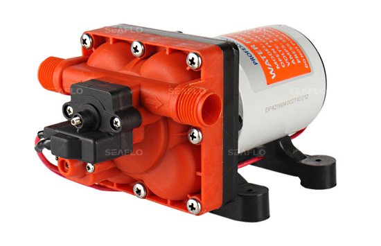 Πρεσοστατική αντλία νερού με ενσωματωμένο σύστημα by-pass, παροχή 11,3 L/min και πίεση 55 PSI, κατάλληλη για κυκλώματα γλυκού νερού σε σκάφη.