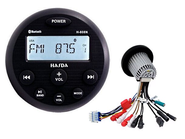 Αδιάβροχο marine ράδιο MP3 Bluetooth της HASDA, μοντέλο H-808N, κατάλληλο για εγκατάσταση σε σκάφη. Υποστηρίζει FM/AM ραδιοφωνικές ζώνες και Bluetooth streaming από κινητό ή tablet.