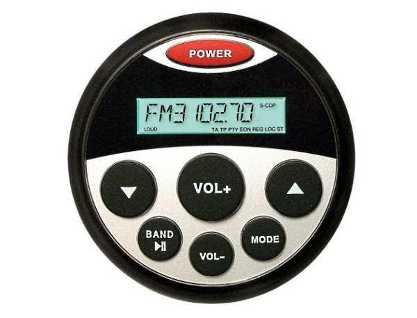 Αδιάβροχο ράδιο MP3 για σκάφη με θύρα USB και ισχύ 4×40W, σε στρογγυλή μορφή gauge για καθαρή αισθητική στο πάνελ.