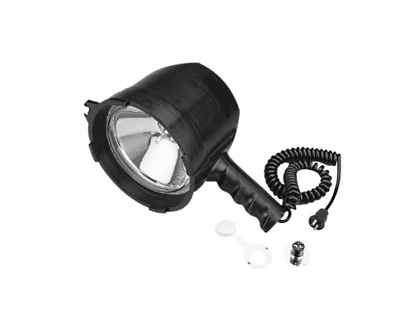 Ισχυρός προβολέας χειρός 12V με ελαστικό περίβλημα για αντοχή και ασφαλή χρήση πάνω στο σκάφος.