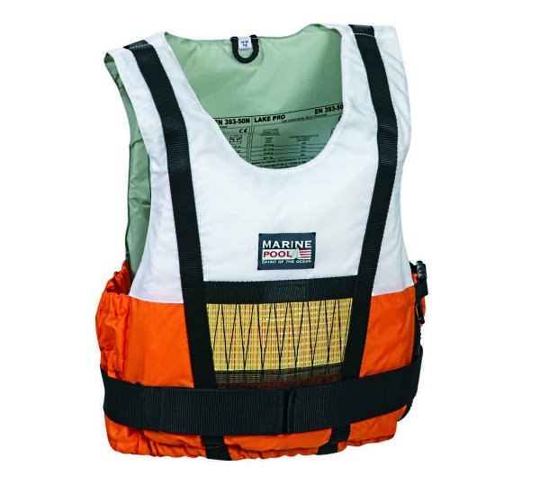 Το αγωνιστικό σωσίβιο Marinepool 50N σε πορτοκαλί-λευκό χρώμα είναι σχεδιασμένο για ενεργά αθλήματα νερού όπως κανό, καγιάκ, ιστιοπλοΐα τύπου regatta ή θαλάσσιο σκι. Είναι βοηθητικό μέσο πλευστότητας με πλήρωση αφρού PE και πιστοποίηση ISO 12402-5 (50N).