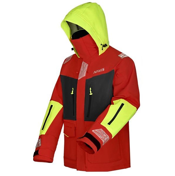 Το ιστιοπλοϊκό μπουφάν NAVIS MARINE σε κόκκινο χρώμα έχει σχεδιαστεί για να ανταποκρίνεται σε διαφορετικές συνθήκες πλεύσης, προσφέροντας υψηλό επίπεδο προστασίας και άνεσης. Η κατασκευή του βασίζεται σε PTFE ύφασμα τριπλής στρώσης (3-layer), το οποίο συνδυάζει αδιαβροχοποίηση, αντοχή στον άνεμο και διαπνοή.