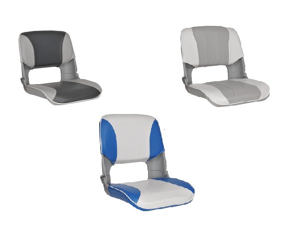 Αναδιπλούμενο κάθισμα σκάφους Skipper με υψηλή πλάτη και θαλάσσια ταπετσαρία ανθεκτική στην υπεριώδη ακτινοβολία.
