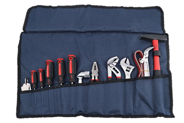 - Περιλαμβάνονται: μαχαίρι, κατσαβίδια, πένσες, ροπόκλειδο, σφυρί, κλειδί φίλτρου λαδιού και μπουζοκλειδί