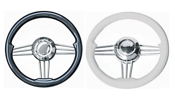 Τιμόνι σκάφους Osculati διαμέτρου 350mm με ανοξείδωτο κέντρο και επιλογή λαβής σε λευκό ή μαύρο χρώμα.