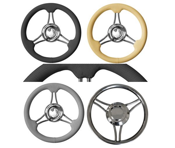 Τιμόνι σκάφους Osculati διαμέτρου 350mm με ανοξείδωτο κέντρο και λαβή σε διαφορετικά φινιρίσματα.