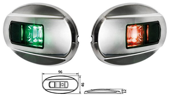 Πλευρικοί φανοί ναυσιπλοΐας LED OSCULATI NEMO 1 με χαμηλό προφίλ, κατάλληλοι για σκάφη έως 20 m.