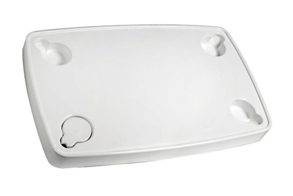 Η επιφάνεια διαθέτει ενσωματωμένες θέσεις για ποτήρια/μπουκάλια στις γωνίες και παρεχόμενο καπάκι ώστε να παραμένει επίπεδη η πάνω επιφάνεια όταν δεν χρησιμοποιούνται. Το τραπέζι πωλείται χωρίς κολόνα/βάση και μπορεί να συνδυαστεί με όλα τα συμβατά στηρίγματα τραπεζιών σκάφους.