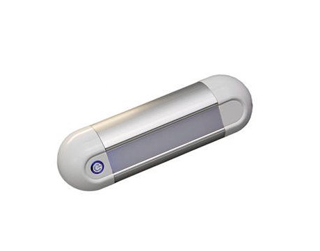 Κομψή πλαφονιέρα LED οβάλ με πρόσοψη INOX και ενσωματωμένο διακόπτη, ιδανική για φωτισμό καμπίνας ή διαδρόμων σε σκάφη.
