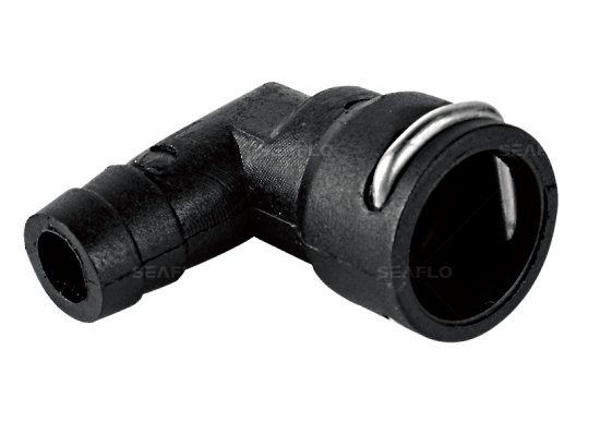 Γωνιακό ρακόρ (quick-connect) για πιεστικές αντλίες νερού, σχεδιασμένο για ασφαλή και στεγανή σύνδεση σωλήνα σε περιορισμένους χώρους.