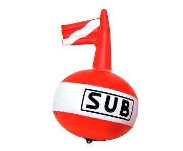 Φουσκωτή σημαδούρα δύτη μικρού μεγέθους με σημαία “Diver Down” για σαφή σήμανση περιοχής κατάδυσης.