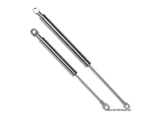 Αμορτισέρ αερίου INOX τρύπα–τρύπα για σκάφη. Μήκη 250–700 mm και δυνάμεις 10–45 kg. Ανθεκτικό στη διάβρωση, για ομαλό άνοιγμα/κλείσιμο καπακιών και lockers.