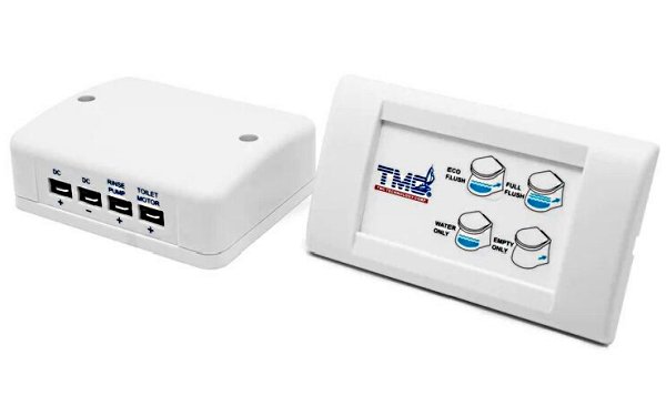 Πάνελ αφής για ηλεκτρική τουαλέτα σκάφους, με συνοδευτικό control box και επιλογές δύο κύκλων έκπλυσης.