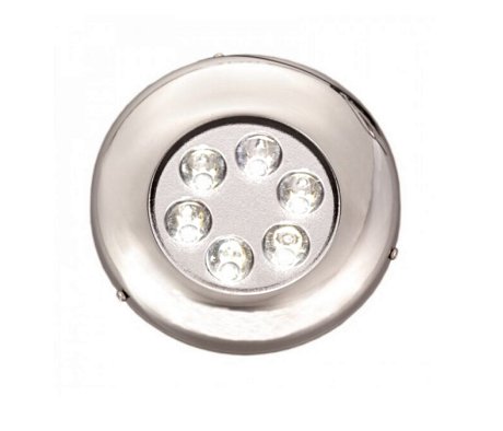 Στρογγυλό υποβρύχιο φως LED από ανοξείδωτο ατσάλι, με διάμετρο Ø120 mm, φωτεινότητα 1100 lm και τροφοδοσία 10–30V DC, ιδανικό για πρύμνη ή πλατφόρμα σκάφους.