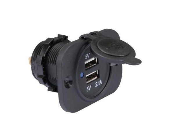 Αξιόπιστη πρίζα 12V με 2 θύρες USB για σκάφη, τροχόσπιτα ή οχήματα. Ιδανική για τη φόρτιση κινητών, GPS και άλλων συσκευών κατά τη διάρκεια της πλεύσης.