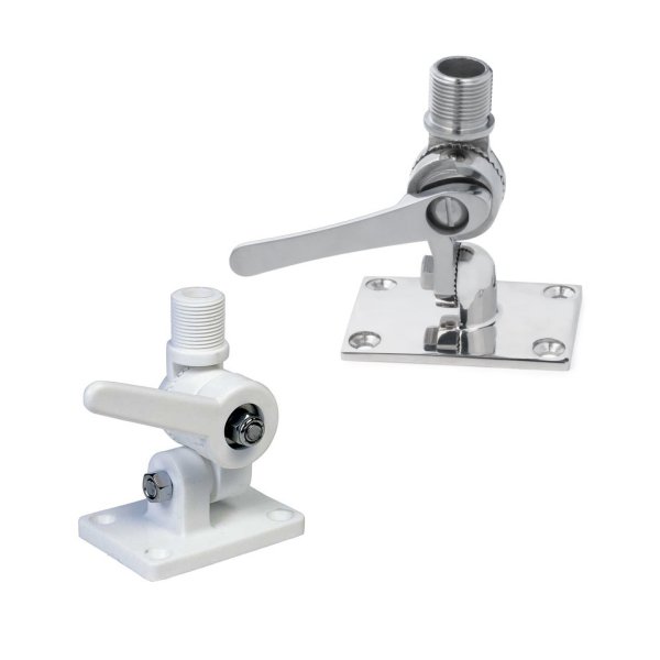 Ρυθμιζόμενη βάση κεραίας 1¼″ σε πλαστική ή inox έκδοση, με μοχλό ratchet για εύκολη αναδίπλωση. Ιδανική για κεραίες VHF, AIS, AM/FM και GPS.