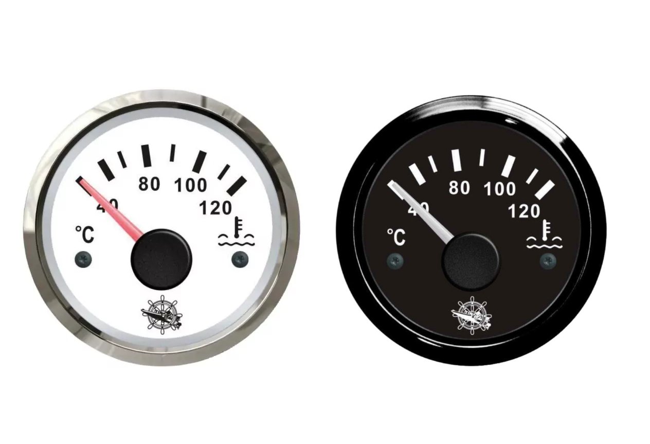 Η πρόσοψη διαθέτει γυαλιστερό ανοξείδωτο στεφάνι και φωτισμό σε κόκκινο και κίτρινο για καθαρή ορατότητα. Λειτουργεί σε συστήματα 12V ή 24V και χρησιμοποιείται για την παρακολούθηση της θερμοκρασίας νερού ή λαδιού του κινητήρα, συμβάλλοντας στην προληπτική προστασία του.