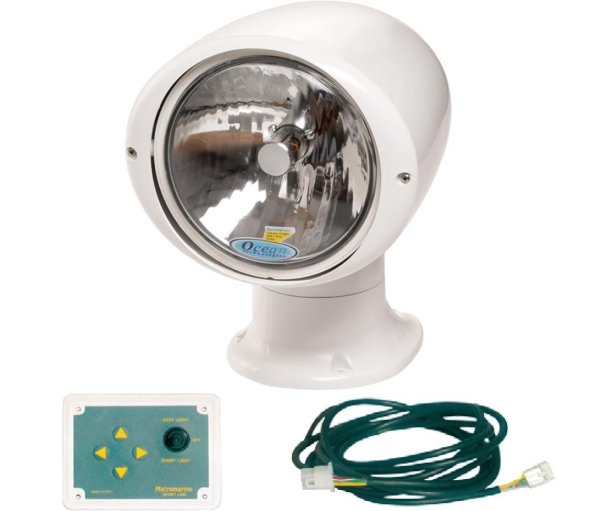 Αδιάβροχος τηλεχειριζόμενος προβολέας αλογόνου για σκάφη, με περιστροφή/κλίση και χειριστήριο κατεύθυνσης για ακριβή στόχευση.