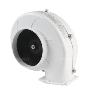 Αεραγωγός/ανεμιστήρας bilge 320 CFM για σωλήνα Ø100 mm. Εκδόσεις 12V και 24V, ανθεκτικό σώμα ABS και στεγανοποιήσεις άξονα – ιδανικός για θαλάμους μηχανής/σεντίνες.